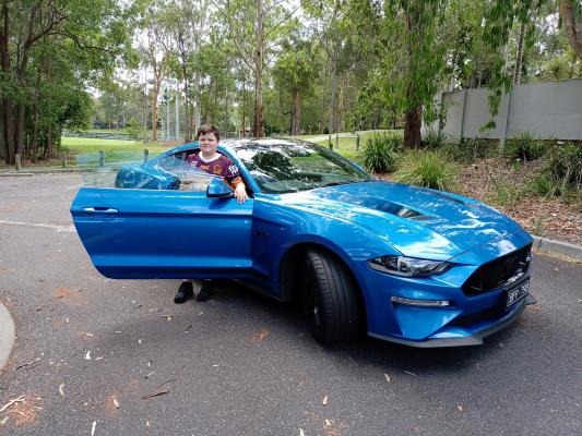 Jake Field with the Mustang that his family was loaned from Ford.